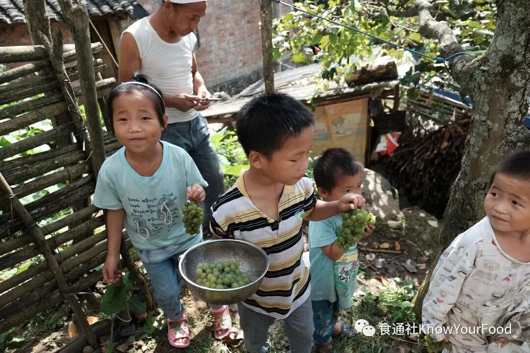 除了种稻厉害,友明叔还把屋后自家的荒山变成了村里最丰饶的果园。到访时正值葡萄成熟,每天下午一见他拿着剪刀出门,我和左邻右舍的孩子们心里就开始欢呼,期待一天中口腹最为满足的时刻。而这背后是他当初为了学种水果,把书拿到树下,边对应边看,不知道的汉字一个一个翻字典,持续了两年才游刃有余。