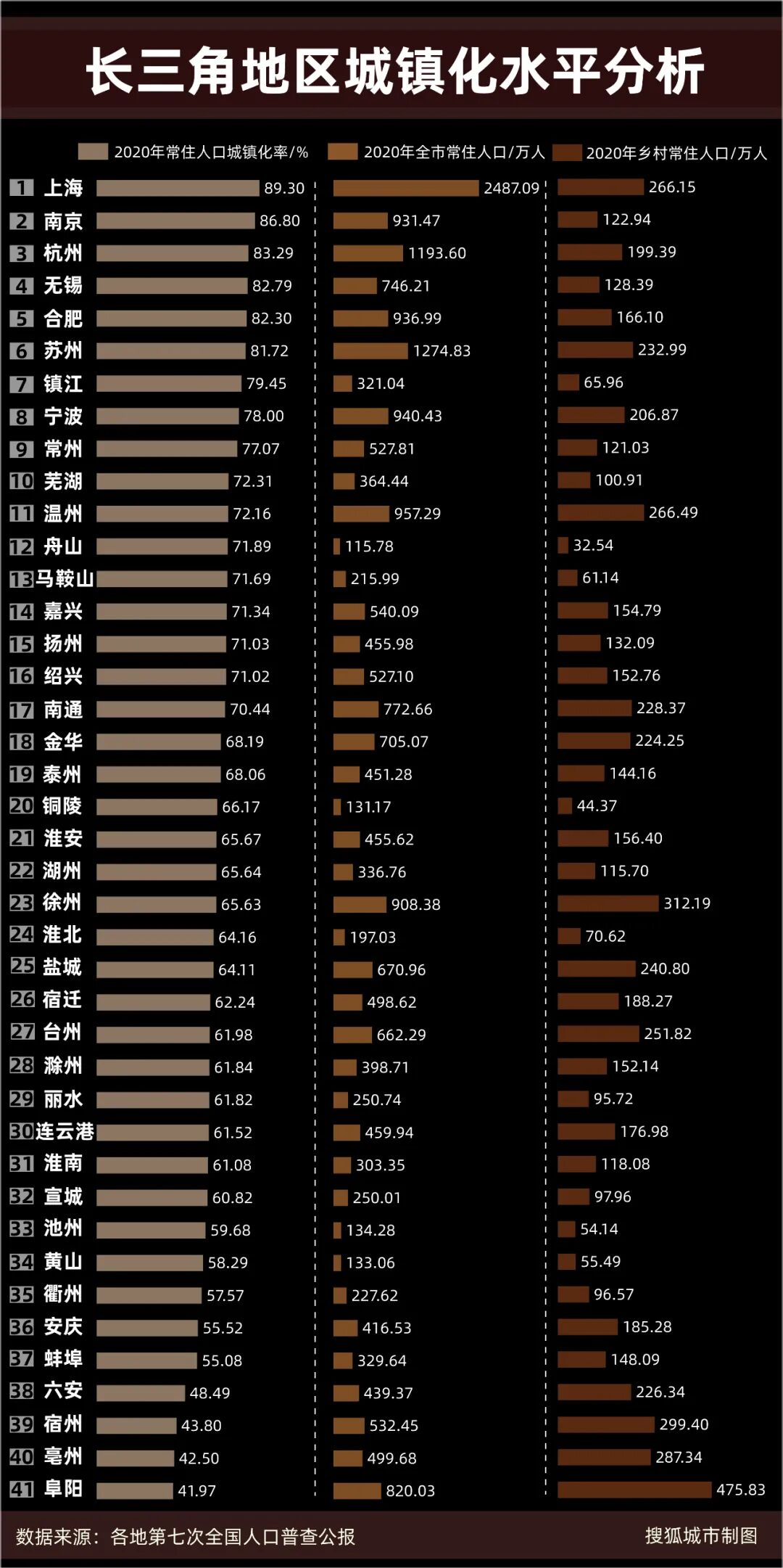 长三角地区城镇化水平分析/搜狐城市制图