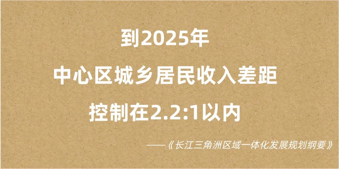 “区域内发展不平衡不充分”,被视为推进长三角一体化发展的主要挑战之一。为形成城乡区域协调发展格局,《规划纲要》提出“到2025年,中心区城乡居民收入差距控制在2.2∶1以内”。![]()