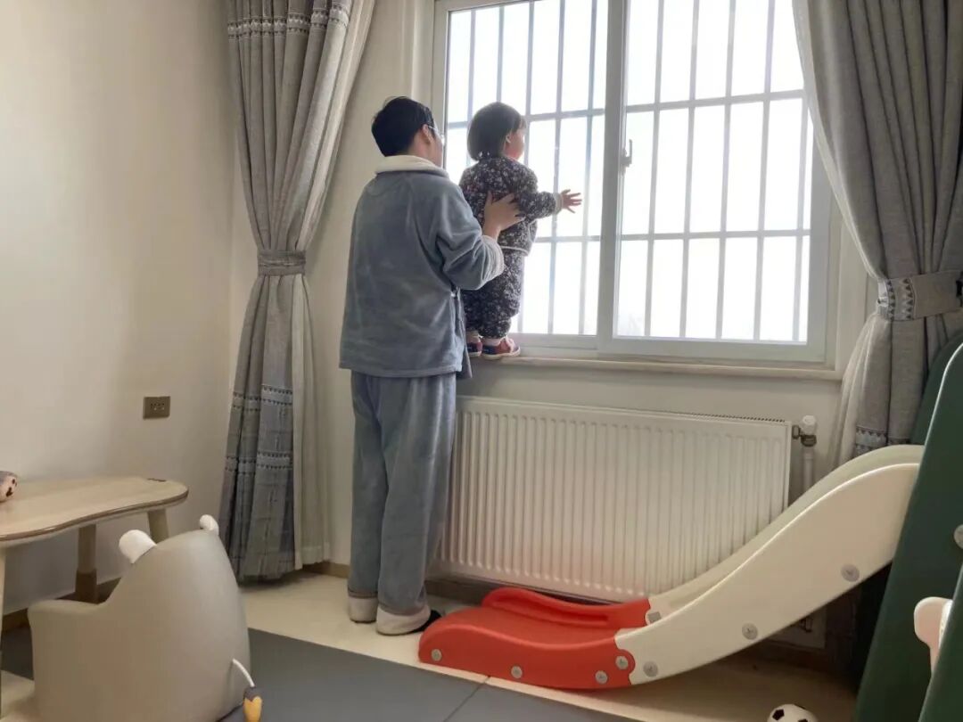 还不到两岁的女儿每天要爸爸抱着看窗外,嚷嚷着“妈妈,口罩,找哥哥姐姐”“爸爸,车车”,想出去玩。孩子也习惯了出门要戴口罩。