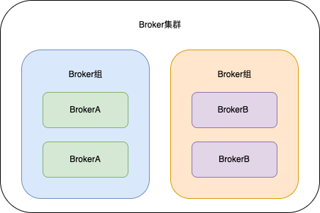 如图所示,两个BrokerA实例组成了一个Broker组,两个BrokerB实例也组成了一个Broker组。