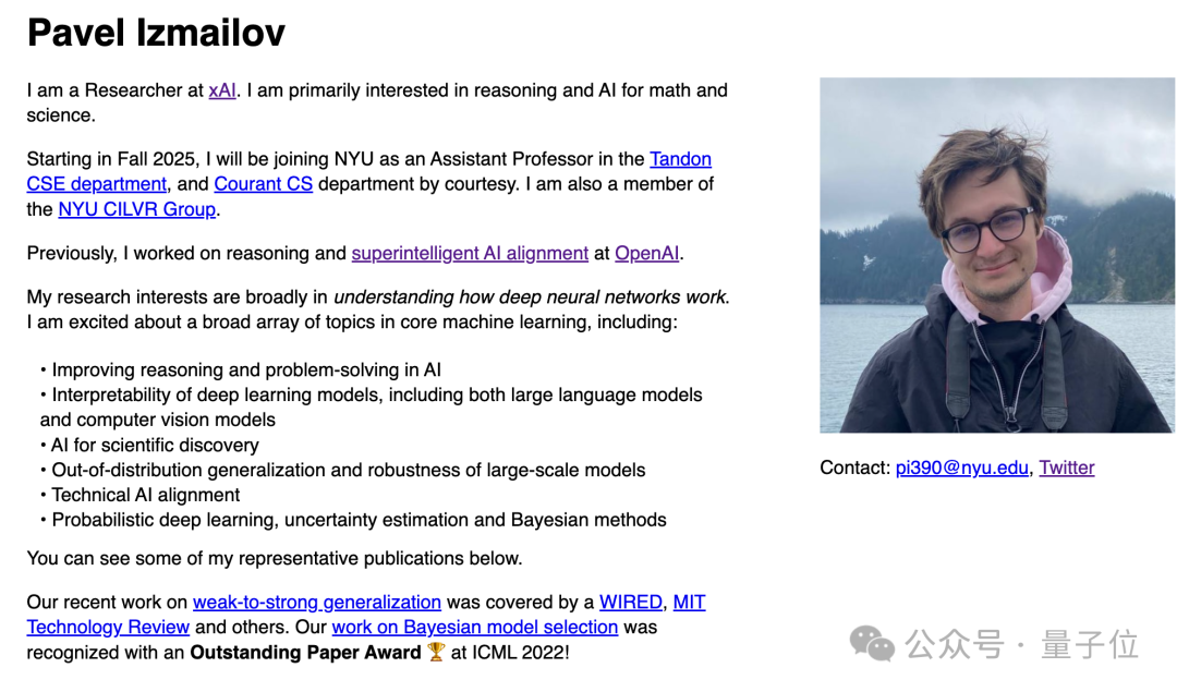 其中Pavel Izmailov已经跳槽到马斯克旗下的xAI,明年也将成为纽约大学助理教授。