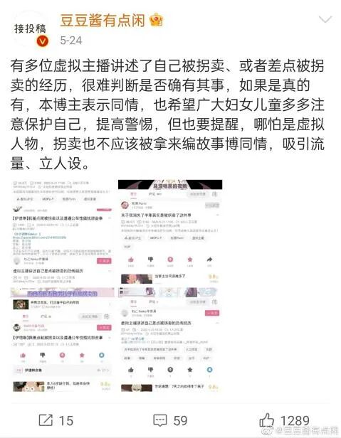 后来,还发生了一系列非常迷惑的事:自从该事件火起来后,就陆续有虚拟主播发视频说自己曾被拐卖过,或是差一点就被拐卖了。