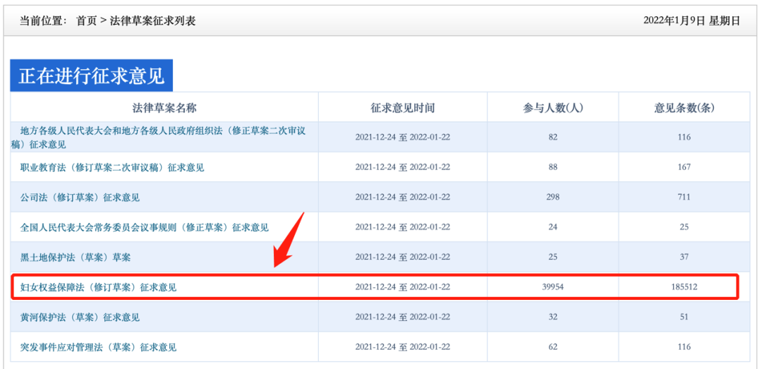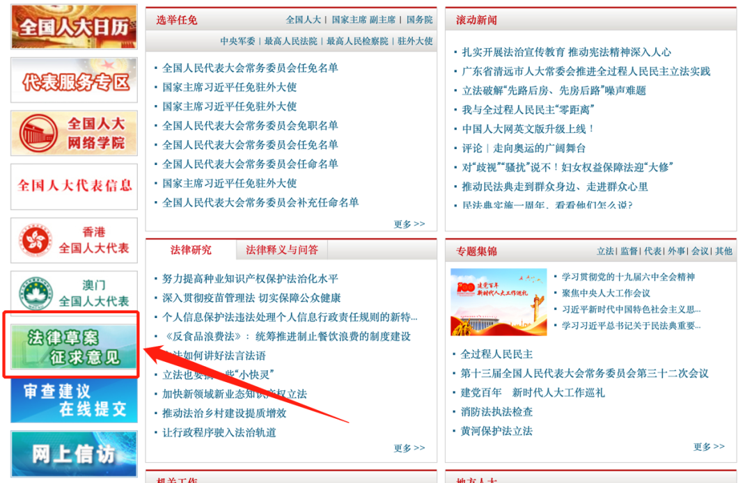 下拉网页,在左侧找到如图“法律草案征求意见”图标