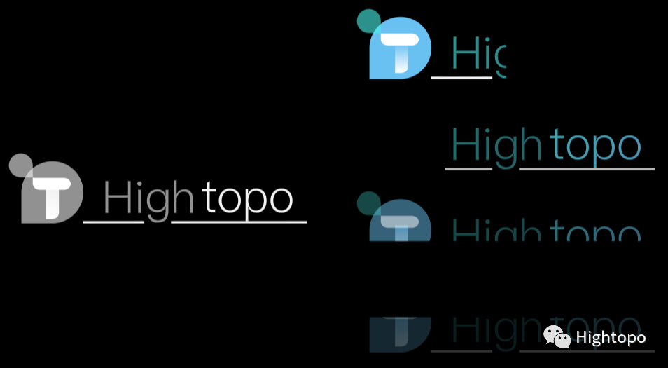 2D 界面的制作是绘制了一张图纸,而 logo 则是制作了一个图标,一个图标可以在图纸中进行多次使用,并可展示不同的样子。下图中右侧的四个 logo 就是同一个图标,分别展示了不同的裁切方式以及透明度,系统中 logo 的进度条效果就是动态的去改变图标的裁切比例来实现,而界面的淡出效果则是改变透明度。整个图标的制作是绘制不同的图形组合而成,这些图形我们也可以去改变颜色,形成左侧的 logo 样式。