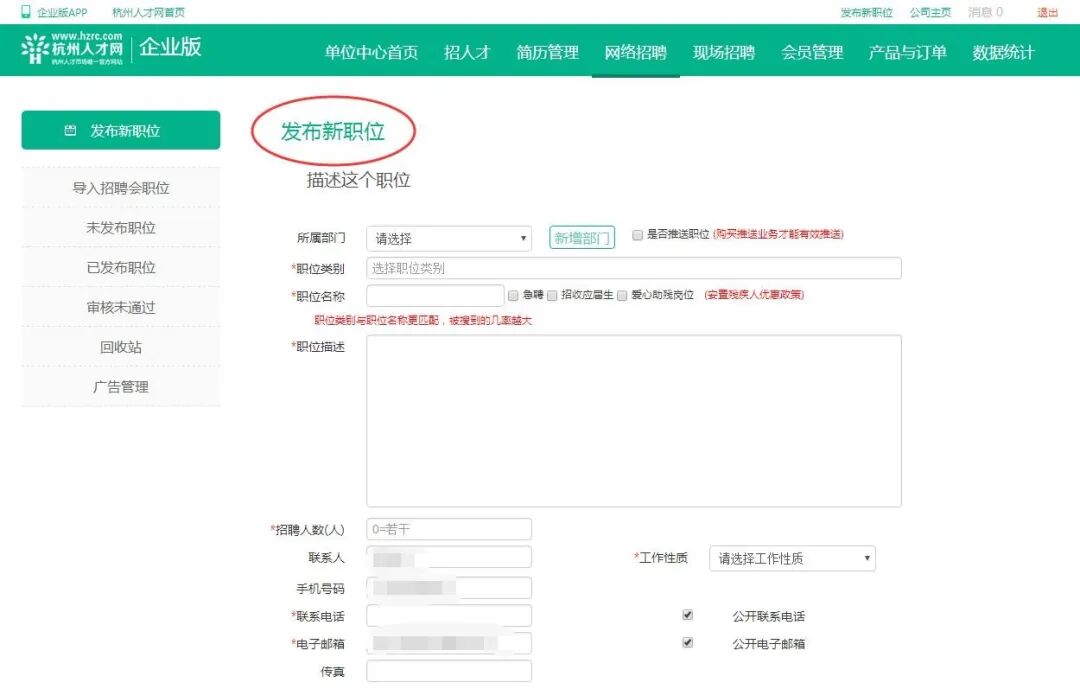四、选择网络招聘,发布需求岗位