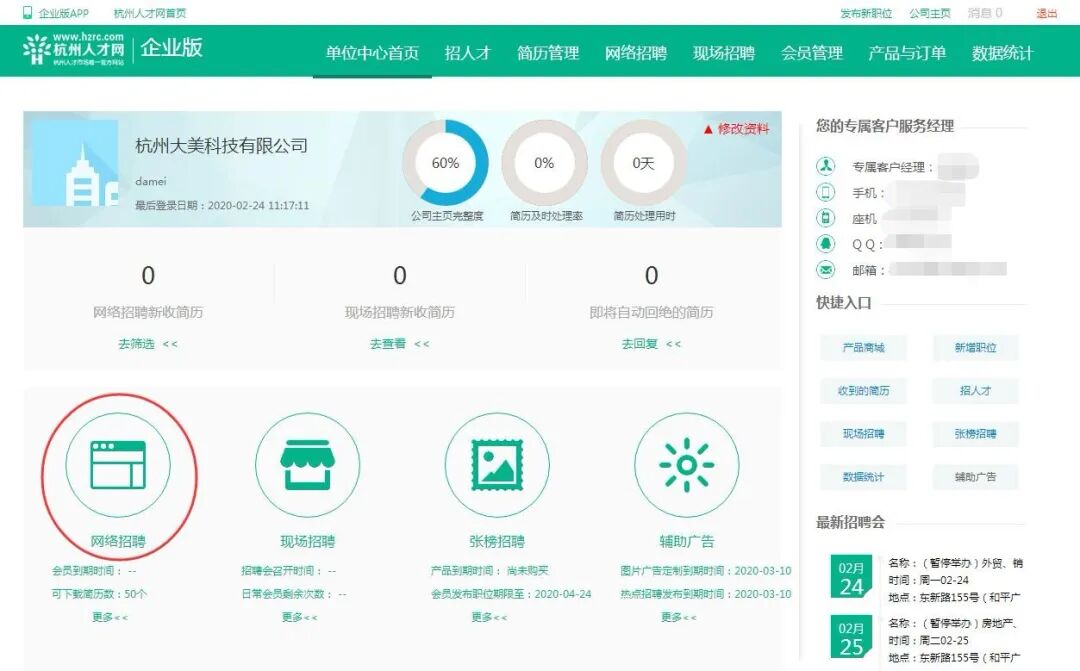 2.已注册杭州人才网账号的用人单位可直接联系工作人员开通会员服务,免费发布毕业生岗位并自行选择定点高校推送发布。