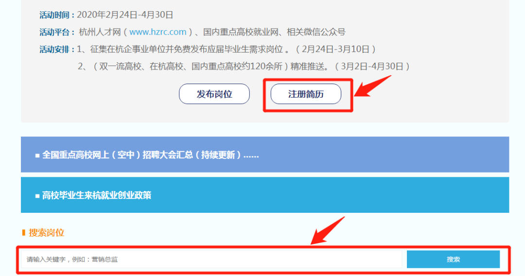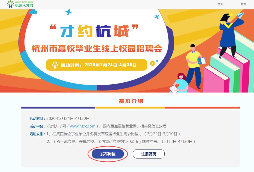 在杭用人单位可登录杭州人才网“线上校园招聘会”专栏报名参加,免费发布应届高校毕业生需求岗位。