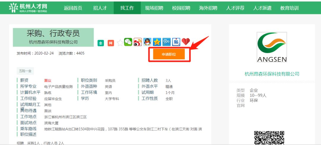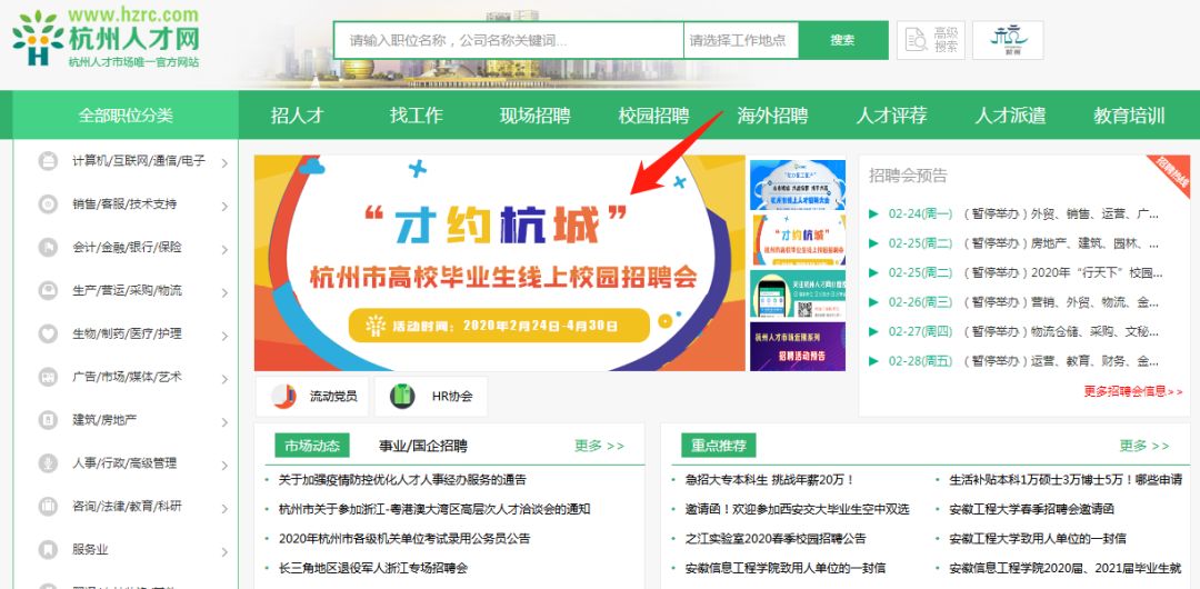 以杭州人才网为例: