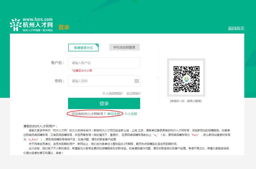 二、注册杭州人才网账号(如有账号可直接登录)
