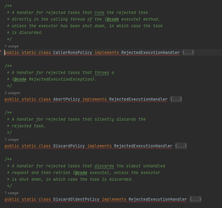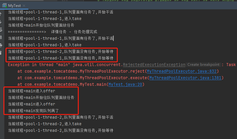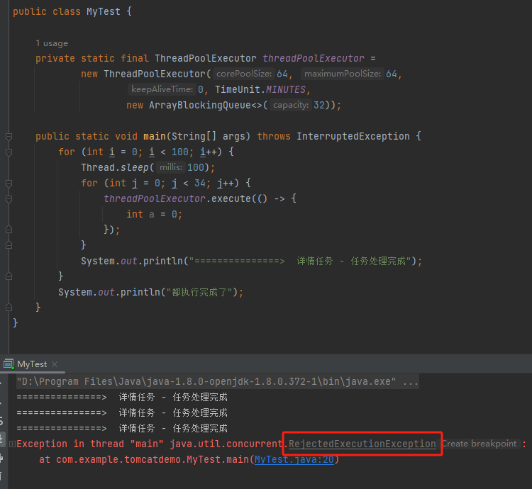 不影响我们主要流程,直接参考默认的拒绝策略,抛出异常就行了:
