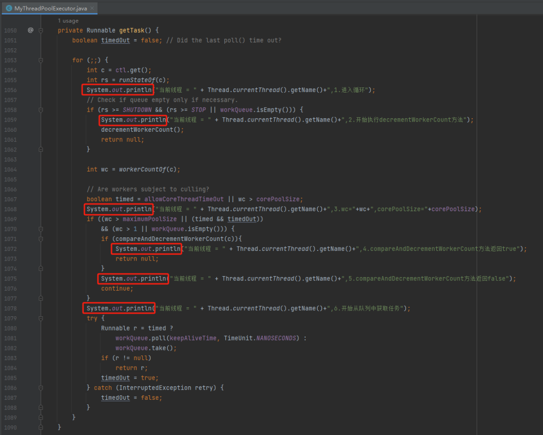 现在,你就可以在 MyThreadPoolExecutor 随便加代码了: