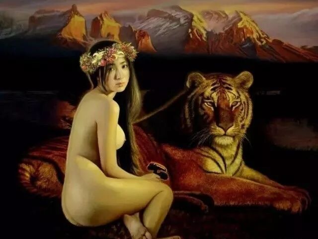 李氏父女合作创作《巫山神女》这样唯美的油画作品,