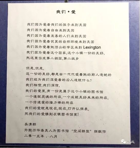 Sophia Ho和王华两代社区领导,时隔二十多年,先后领导华人慷慨捐赠,金额超过了华人的人口比例。翻新后的图书馆里好几个地方有华人的冠名牌,大家进到图书馆的时候都有自豪的主人翁感。