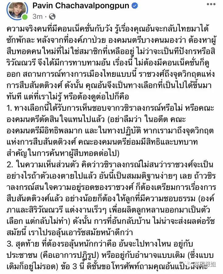 初步来看,他这次突然回泰国,即使官方没有任何表示,王室粉、保皇派民众对他的认可已经到达了一个高度。