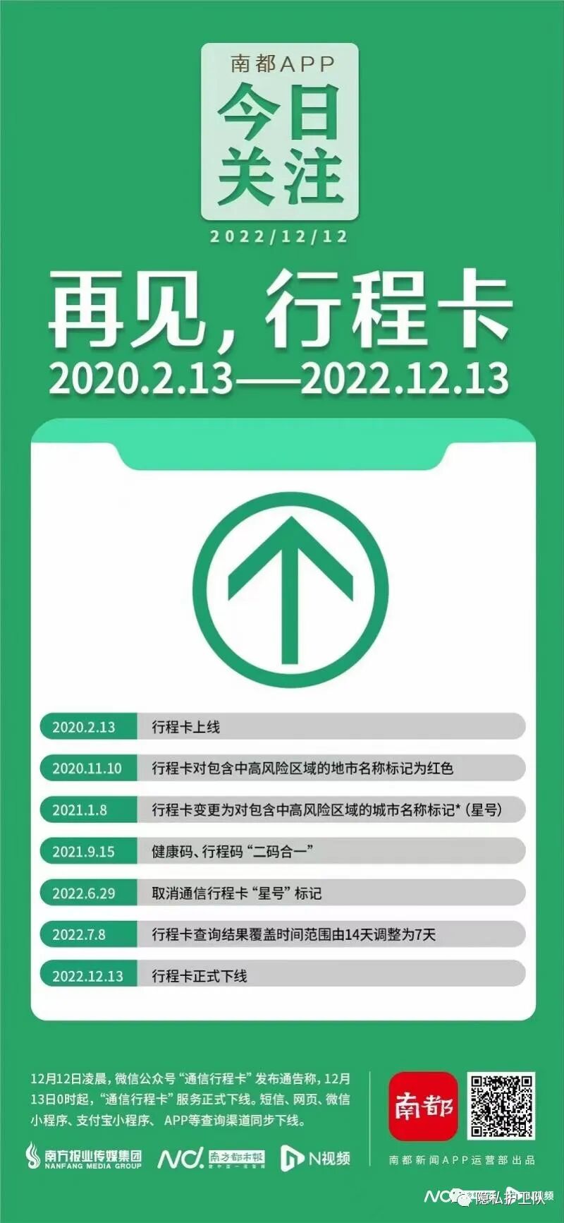 今日零点,由中国信息通信研究院开发、运营近三年的“通信行程卡”(下称“行程卡”)正式下线,包括短信、网页、微信小程序、支付宝小程序、App等。12月12日晚,中国电信、中国联通、中国移动三大运营商先后表示,行程卡服务下线后,将同步删除用户行程相关数据,依法保障个人信息安全。
