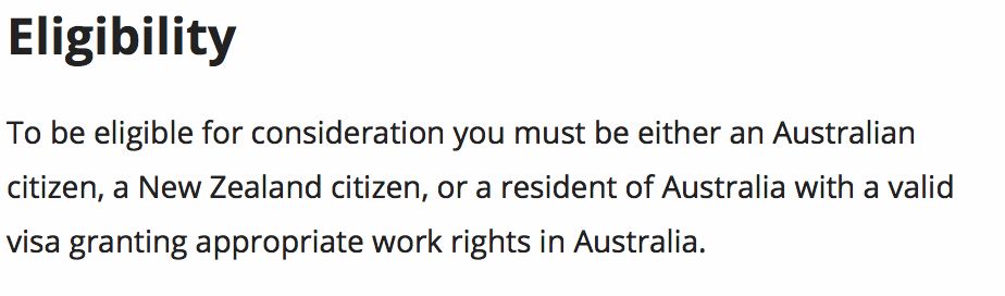最重要的是!不光是持澳大利亚和新西兰的国籍的人可以申请,连持有效工作签证的外国人也可以申请非机密工作职位。