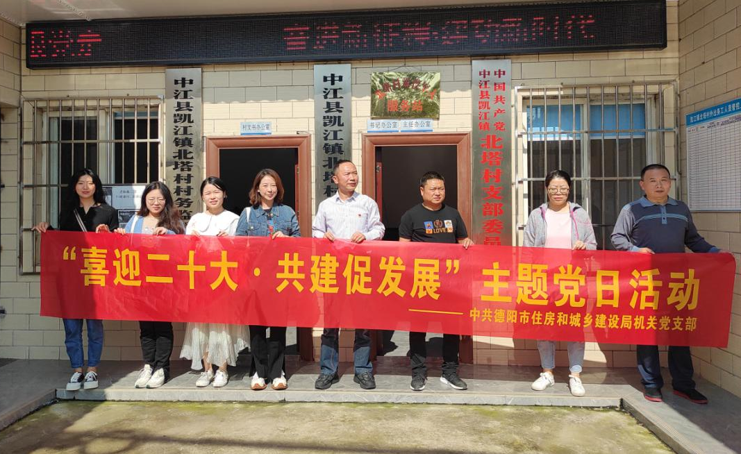 “喜迎二十大·共建促发展”,局机关党支部走进乡村振兴结对联系的中江县凯江镇白塔村党支部开展主题党日活动,与村两委加强基层党建工作交流,提升党建工作水平,积极筹措项目建设资金10万元,为乡村振兴贡献力量。