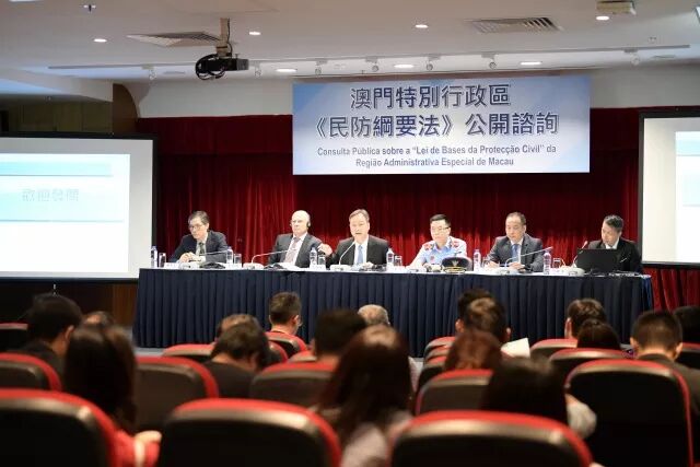 為期四十五日的《民防綱要法》公開諮詢於2018年6月28日起展開,澳門特別行政區政府迄今舉行了四場團體諮詢會,分別於7 月2日、3日、5日及6日在治安警察局出入境事務廳大樓禮堂進行,約380名分別來自民防架構成員、公共部門、社會團體、義工機構、醫療業界、教育團體及相關學校、物管、建築工程、運輸業、旅遊、酒店及博彩業等代表出席。諮詢會上多名代表發言,包括公共部門、高等院校、社會團體、醫療業界、客運、旅遊業、職業介紹所、酒店業界等,收穫眾多提問和寶貴意見。