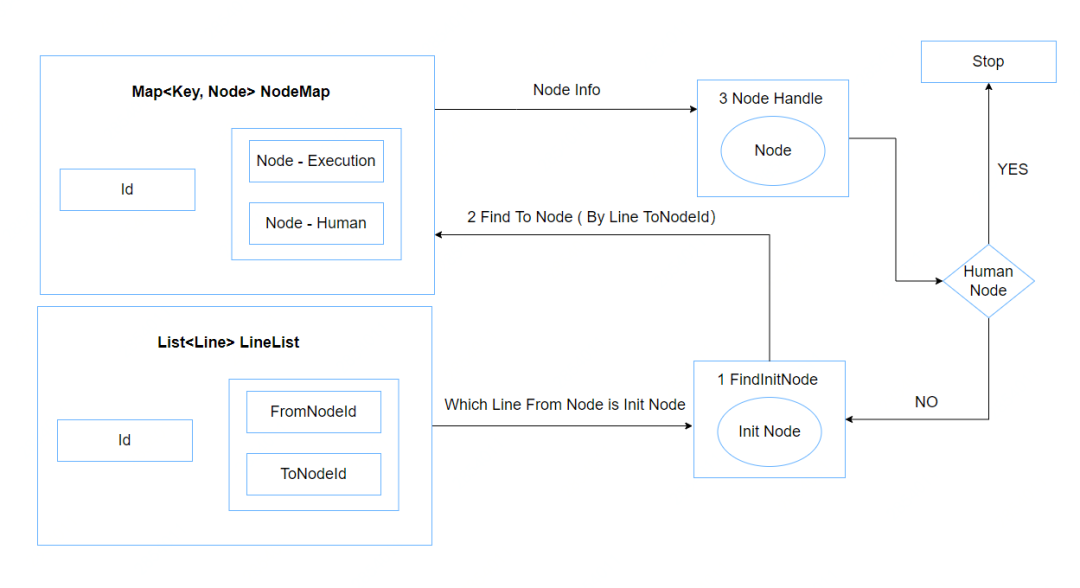 PVM 虚拟机的实现,即通过某个节点(发起时为开始节点)作为初始节点,按照某个连线的 action 进行节点的自动执行的虚拟机