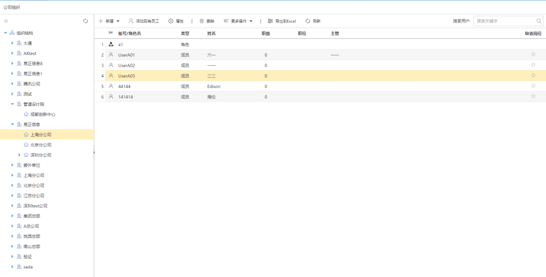 所以在组织架构设计的时候,要使用插件的方式来做,具体使用哪种插件,可以在配置文件中进行配置。以下为一个商业产品的组织架构操作界面示例。