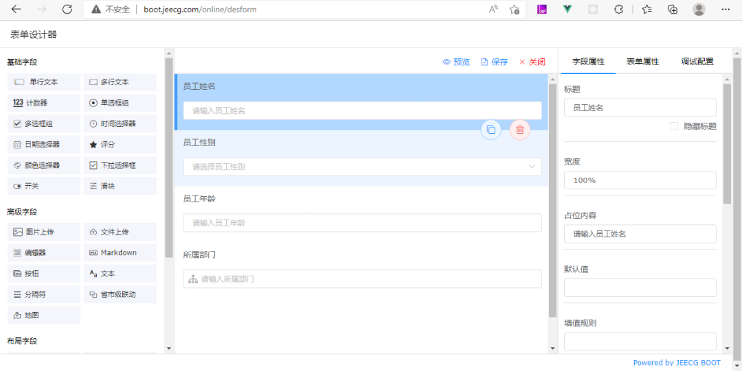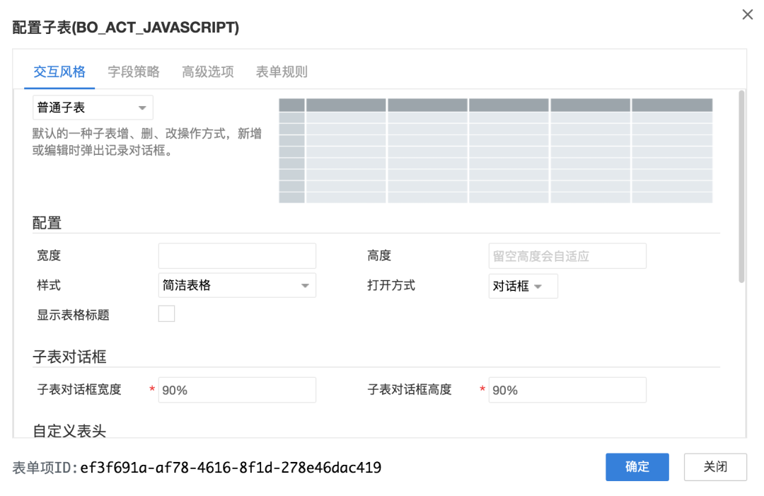 确定表单信息(字段、类型、数据源、校验规则)和表单样式