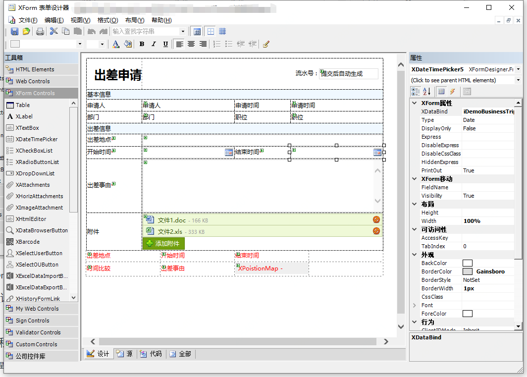流程系统需要表单设计器,一个流程的不同节点可以挂接不同的表单,以方便不同角色的人关注不同维度的流程信息