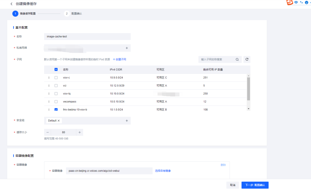 首先创建镜像缓存