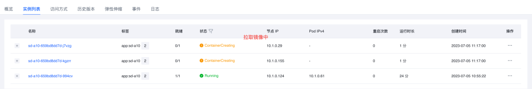 当集群中不具备 pod 需要的 GPU 资源时,会先 pending,然后尝试扩容 GPU 节点,扩容成功后再正常拉起 pod。在这个过程,有两处比较耗时:一是拉起 ECS 加入到 VKE 集群,二是容器镜像的拉取。