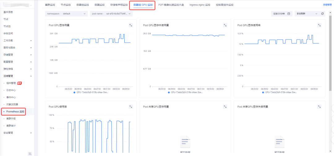 我们也可以通过 VMP 提供的容器组 GPU 监控能力来查看 Pod 的 GPU 使用情况
