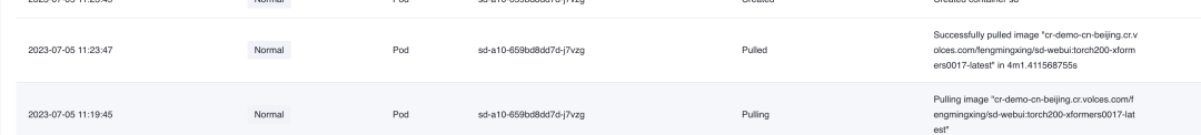 再次重新请求 Stable Diffusion WebUI,生成图片,增加负载,进行 HPA 和集群节点自动伸缩,观察拉取镜像的耗时情况