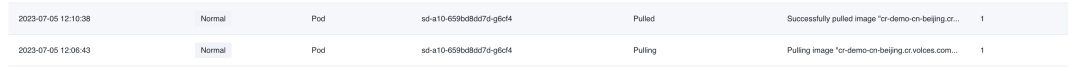 镜像构建完成后,会推送到火山镜像仓库。