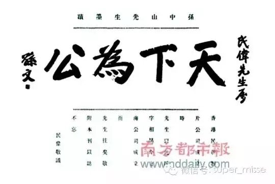 还有孙中山先生的“天下为公”四个大字,正是为黎民伟题写……