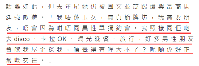 在这个过程中,马廷强也一直陪伴她。一开始她只觉得“马先生”是一个心地好有义气的朋友,还没要发展到拍拖的程度。