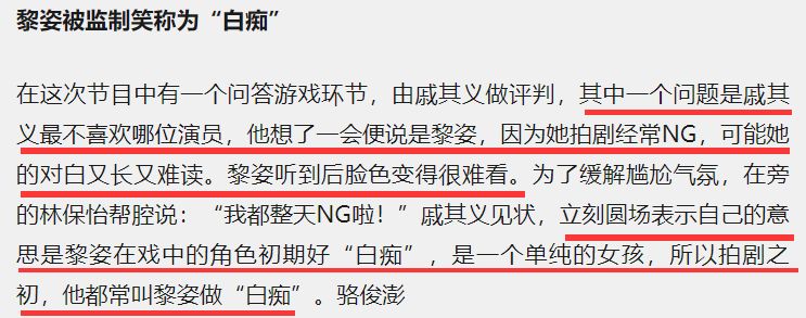 雯女有没有嘲讽黎姿爱NG就不知道,但戚其义上《快本》的时候,就说了黎姿拍剧经常NG,听得黎姿一脸尴尬。