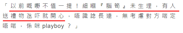 多年后黎姿表示以前被人送礼物哄一下就开心,也没有考虑对方适不适合