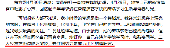 她选择继续完成学业,还修读了香港演艺学院舞蹈系课程,在这段时间和翁虹成为了好朋友。