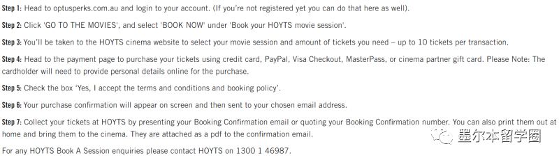 Google搜索Optus movie ticket,可以买到HOYTS影院的超值电影票(最便宜的是$12一张成人票),用Optus的小伙伴们一定要mark一下~