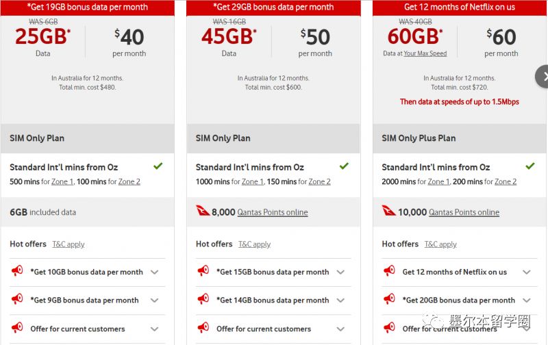 刚来墨尔本的宝宝们,看到价格一定会觉得很不适应,虽然有多到用不完的流量、无限量的短信、电话。