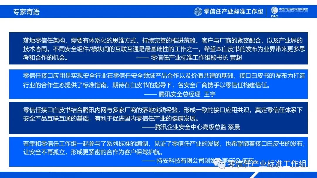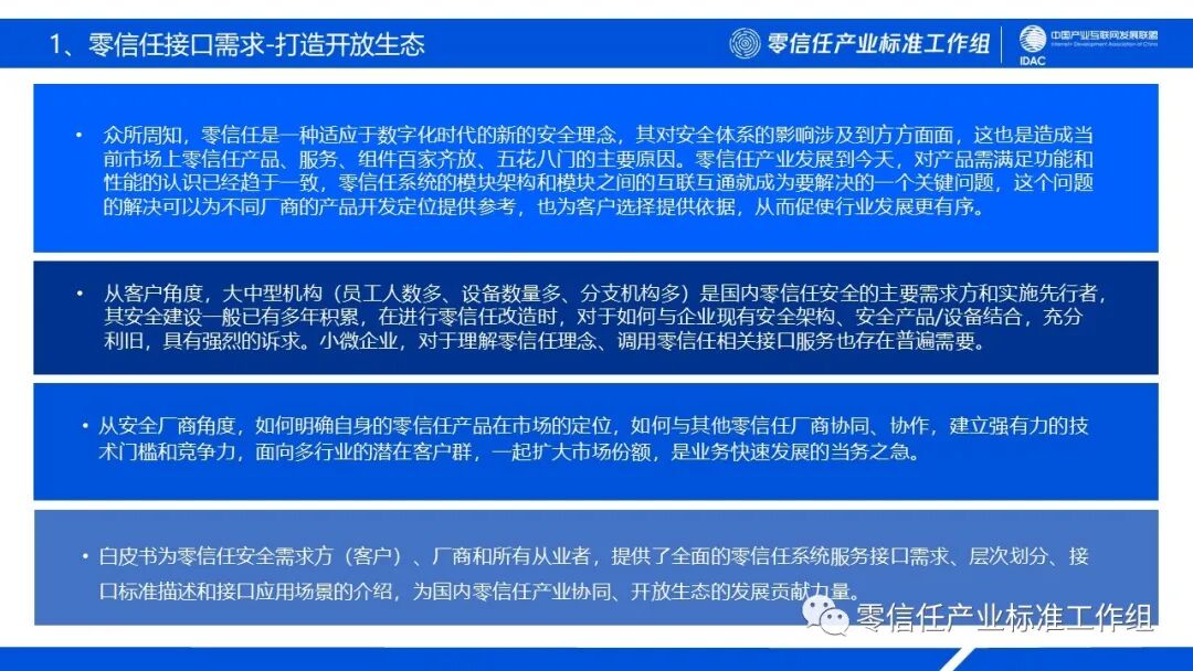 功能介绍 2020年6月24日,多家机构共同发起成立国内首个“零信任产业标准工作组”, 覆盖产、学、研、用四大领域,推动零信任系列标准的研制与产业规模化落地,提高零信任理念的推广和应用效率。目前工作组成员单位已超过60家。