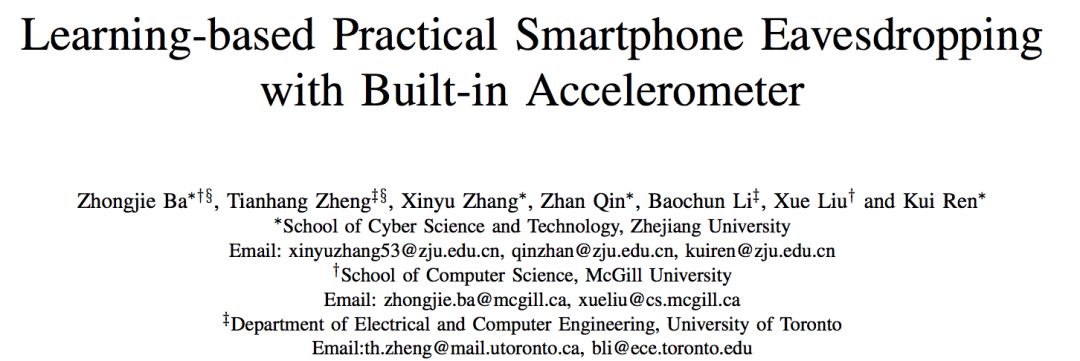 成果表明,智能手机App可在用户不知情、无需系统授权的情况下,利用手机内置加速度传感器采集手机扬声器所发出声音的震动信号,实现对用户语音的窃听。