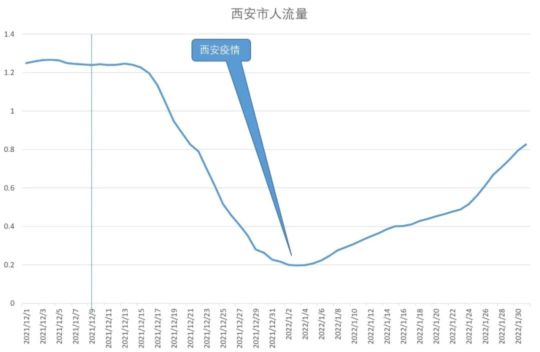 1月底时,西安市人流量也只恢复到疫情前的70%。
