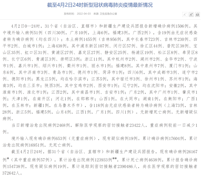 1月时的疫情。但从结果看,每日病例仍然在继续上升。4月2日,长春新增确诊病例和无症状感染者合计3823人,再次创下奥密克戎变异疫情以来的当地最高峰。