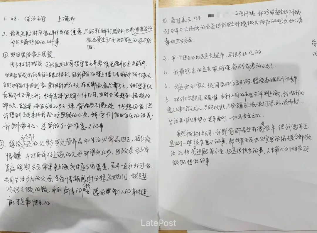 封控让她感悟到 “比疫情更可怕的是人心”。但也看到人性的温暖。很多邻居会帮不会团购的老人购买物资。解封后,她最想做的三件事是:去外面的餐厅吃个饭;找个街边的小酒吧,吹吹风喝点酒,看看路人和街道;找个阳光好的日子,去草坪上晒晒太阳,静静地什么也不做地感受下大自然。