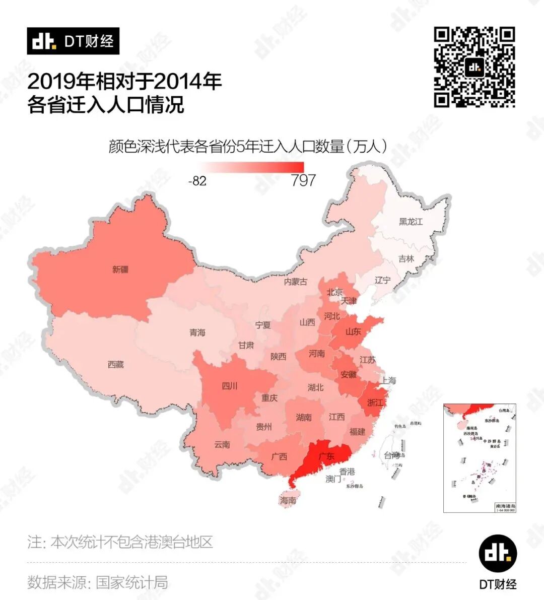DT君继续根据2019年国家统计局的人口抽样调查数据计算了各省市地区的未婚率,颜色越深的地方,未婚率就越高。如上图,如果你成功出生在山东、福建,说不定现在已经结婚了。当然,如果投胎并没有如此幸运,反正中国去哪已经不受限制了,通过后天努力迁移到这些地区,也是可行的。如果将人口迁入热力地图与未婚率地图进行比较,发现深浅区域是大致互补的。DT君大胆猜想了下,大量人口迁入,正好填补了当地婚姻市场缺口,再结合中国人口比例来看,应该填补了当地妹子的缺口。至于在两张地图上都十分显眼的广东,DT君只能联系下条新闻强行揣测,吸收力实在太强,过犹不及。说回正题,广东是中国打工圣地,到处都是密密麻麻的流水线,全国妹子都涌了过去,情况自然就特殊些。思想进步、经济建设:都是单身祸首?