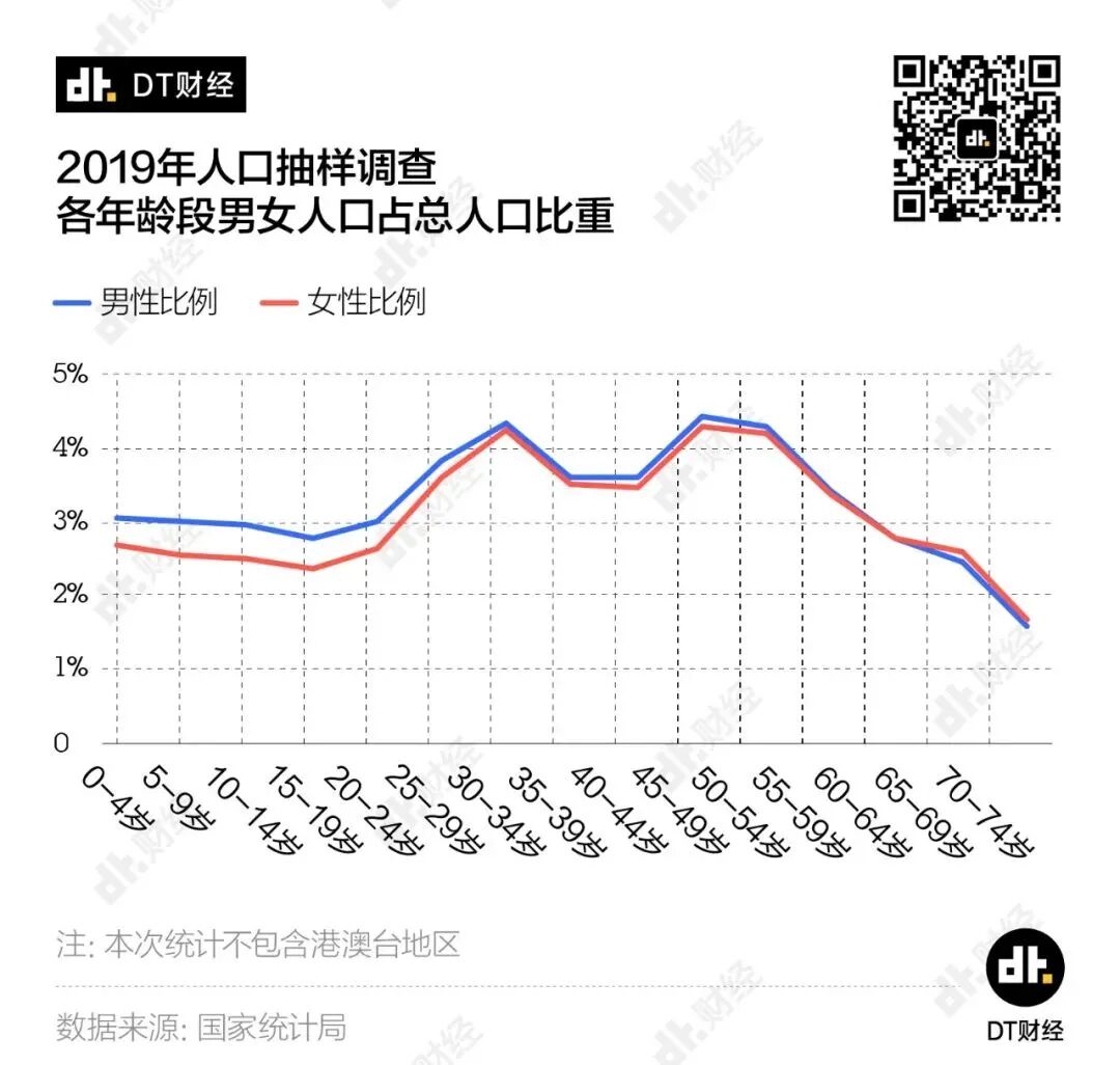 先从大环境说起。DT君姑且按照大概率简单粗暴地认为,一定数量的男性,只要能对应同等数量的同龄女性,就能完美匹配。