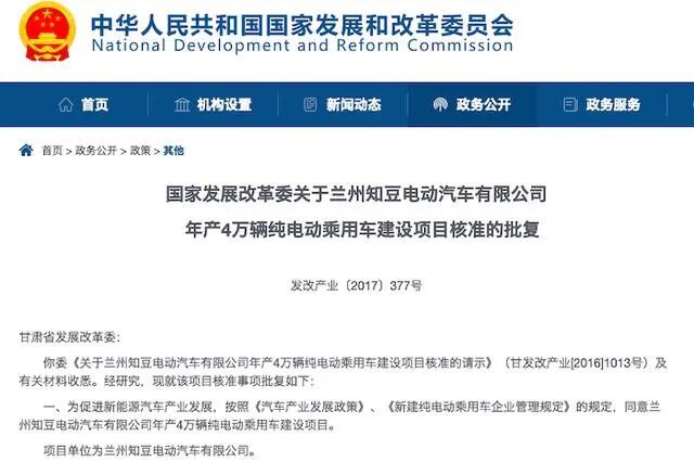 而出于对知豆往年所建立的市场体系的肯定,国家发改委在2017年3月1日就正式官宣,兰州知豆电动车有限公司年产4万辆纯电动车乘用车建设项目投资获批准,成为继北汽新能源、长江汽车、长城华冠、奇瑞新能源、敏安汽车、万向集团、江铃新能源、重庆金康、国能新能源、云度汽车之后第11家拿到新能源资质的电动车制造商。