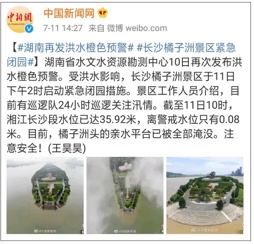 湖南发布洪水橙色预警,多个地方全部被洪水淹没。