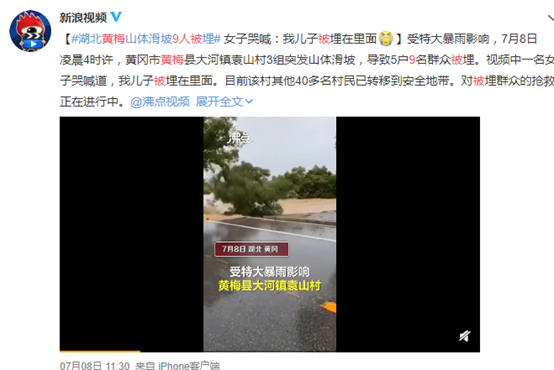 湖北黄梅县,暴雨导致山体滑坡,9名百姓被埋,一名女子不断哭喊着:我儿子被埋在里面了。