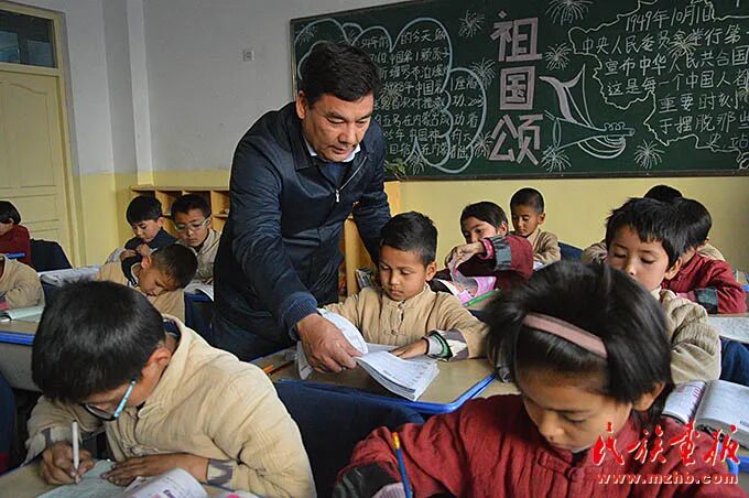 ▲库尔班·尼亚孜正在辅导学生。(图片来源:民族画报)穆萨·图尔贡深情地说:“我能考上理想的大学,主要得益于在依麻木镇国家通用语言小学打下良好的语言基础。如果当年不是在国家通用语言小学上学,我可能会辍学,和同龄人一样早已结婚生子,一辈子也走不出小村庄。是依麻木镇国家通用语言小学让我明确了人生方向,我永远感谢依麻木镇国家通用语言小学!”教育是光,光明多了,黑暗就少了;依麻木镇很小,世界却很大。每周一,库尔班都要带着学生们举行升旗仪式。面对国旗,举手庄严宣誓:“我宣誓,我是中华民族的一分子,我感到非常自豪!我爱伟大的祖国,我愿做民族团结的小主人!”语言通了,心灵就通了;文化通了,思想就通了。语言是文化的载体,文化是语言的后盾。学习中华优秀传统文化,可以让孩子走得更远。在依麻木镇国家通用语言小学,全校师生春节一起吃饺子,端午节一起吃粽子,中秋节一起吃月饼。除了国家通用语言文字,学生还学习二胡、京剧、古筝、书法……别的城市小朋友会的技艺,这里的孩子也会。![]()